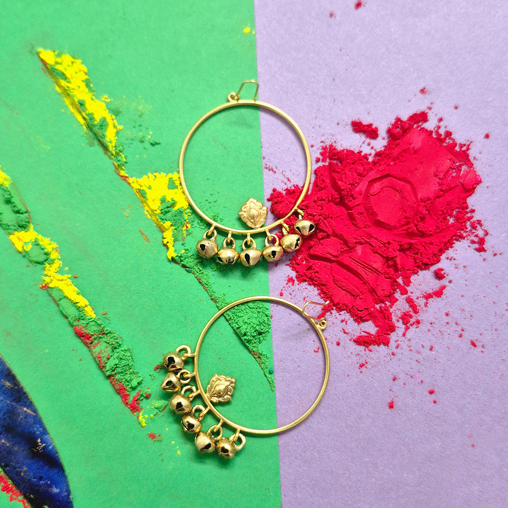 Next on our playlist? These are 22K gold-plated ghungroo hoop earrings. Lightweight, fun, and rhythmic, they are designed to match your step from AM to PM.