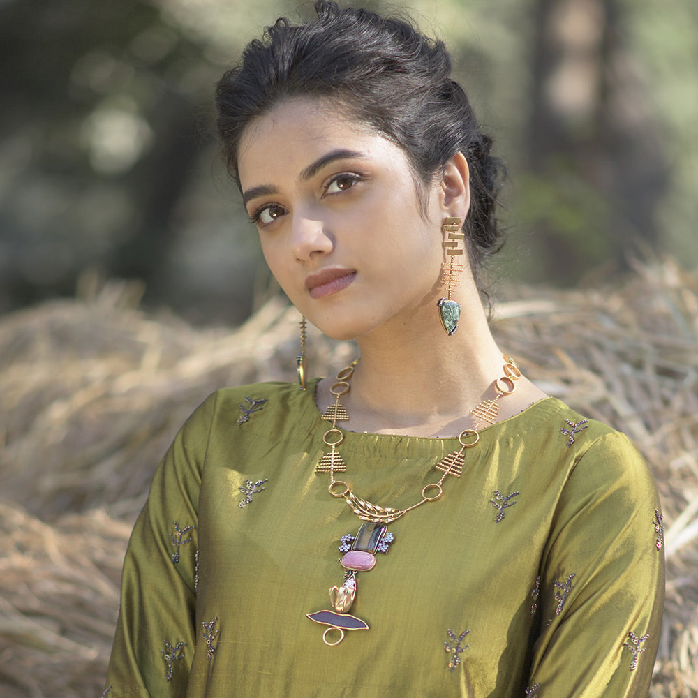 Suhani Pittie jewels are handcrafted with the finest quality metals plated with 22kt gold/ pure silver and lacquered with an anti-tarnish solution.