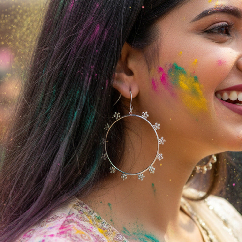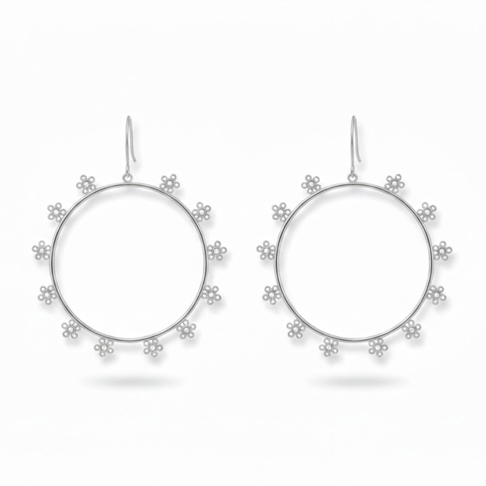 Statement silver hoops meet daisy-inspired accessories for your 2026 summer style. Cool down the silhouette, frame your face, and run across the grassy meadow to watch your favorite band dressed with these stunning hoops.