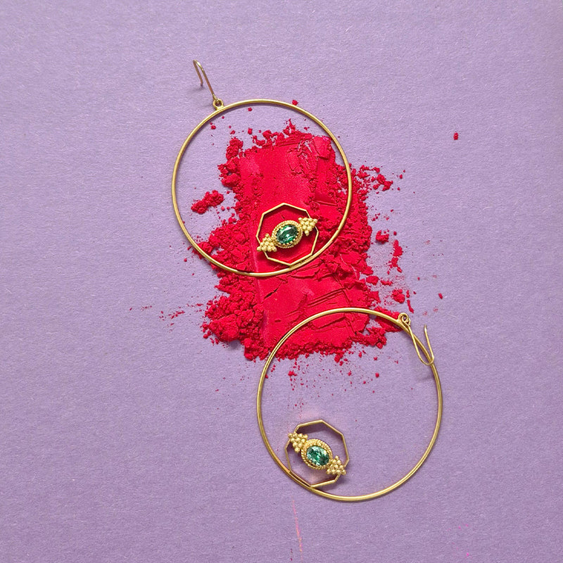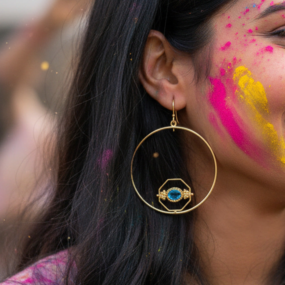 Add these handmade hoop earrings by local artisans in 22k gold plating to your Holi outfit.