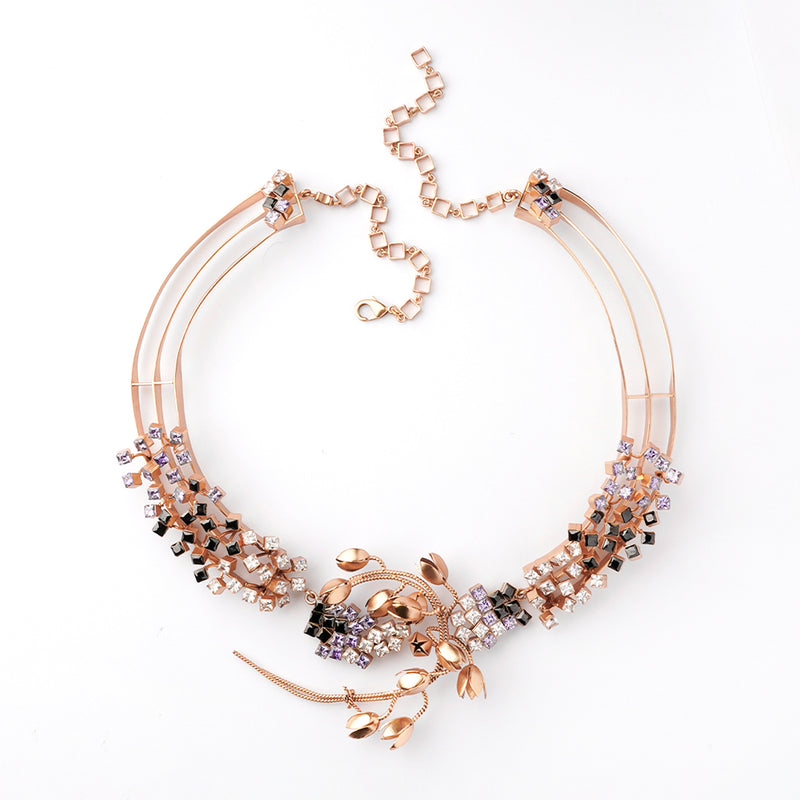 Keep your style game on and let the crowd soak in your spellbinding, head-turning, show-stopping accoutrements. This three ring kanthi-style, choker necklace features exquisite gold-plated snowdrops and is speckled with iridescent gemstones. Your entrance will be magnificent and certain to make a statement, much like this work of art.